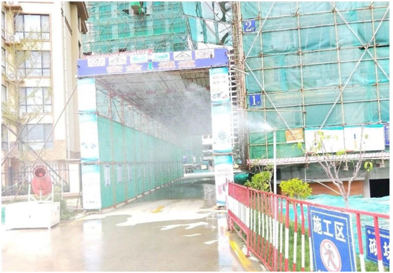 工地安裝灑水和霧化噴淋裝置防塵防霧霾污染。