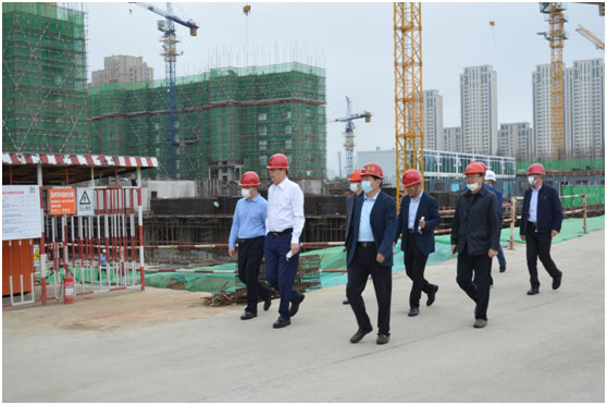 啟動儀式開始前,各位領(lǐng)導參觀施工現(xiàn)場整體提升式腳手架、鋁模板、文明施工及安全防護標準化設(shè)施。