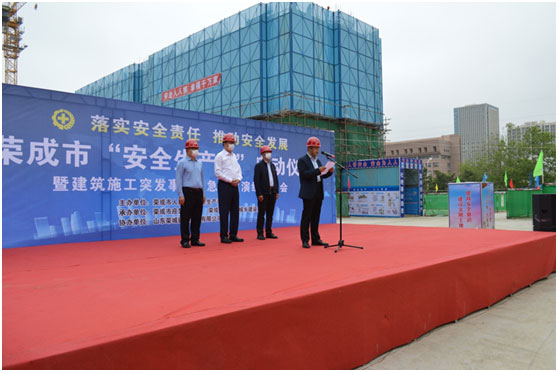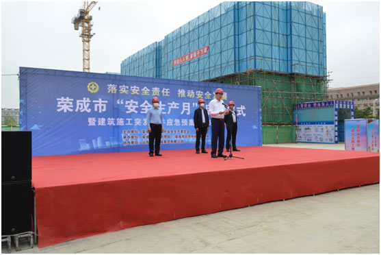 6月3日上午,榮成市2021年“安全生產(chǎn)月”啟動儀式暨建筑施工突發(fā)事件應(yīng)急預(yù)案演練觀摩活動在我公司承建的琥珀湖畔項目工地的舉行。省安全生產(chǎn)督導組駐榮領(lǐng)導,市委常委、常務(wù)副市長鄭躍文、住建局局長許勝、應(yīng)急管理局局長林宏健等相關(guān)領(lǐng)導,及全市建筑企業(yè)負責人參加活動。