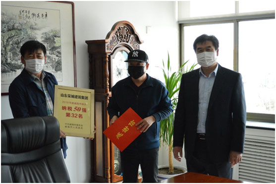 3月31日上午,榮成市委領(lǐng)導(dǎo)蒞臨集團公司,為我公司頒發(fā)了威海市“二〇一九年度納稅五十強”獎牌。此前集團公司曾多次獲得該項殊榮。。